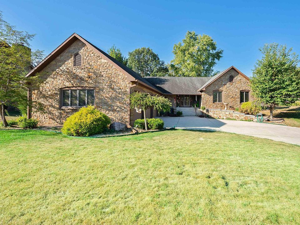 You will appreciate the curb appeal of this well cared for, stately ranch home! With 2,253 sq. ft. on the main level plus a full, partially finished basement, this residence provides exceptional living space. The large eat-in kitchen features a center island, an abundance of cabinetry and flows into a separate formal dining room—perfect for gatherings. Enjoy the huge living room, anchored by a cozy fireplace and vaulted ceilings. Three spacious bedrooms and four full baths ensure comfort and convenience for all. The basement has another large gathering area with wet bar and fireplace and plenty of additional storage space that could be finished into whatever your heart desires! Will will also love the huge 3 car garage and back paver patio! This is a home designed for both everyday living and entertaining!