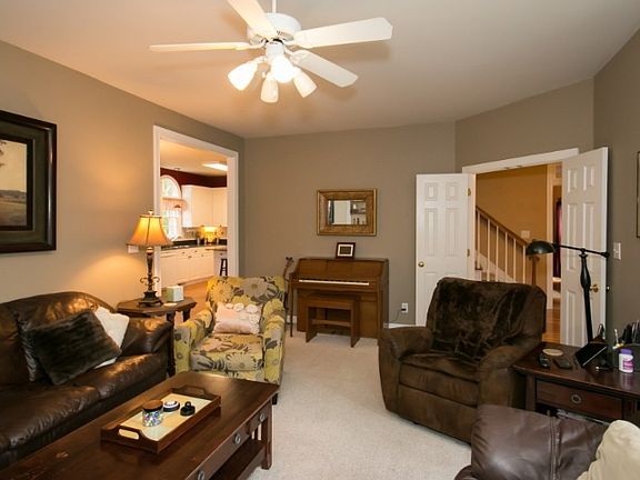 All Brick Home w/ Basement! Home located on nice wooded lot. Home features great room w/ fireplace & bay window and Living Room/Office. Dining Rm w/ hardwoods, crown molding, access to deck. Spacious kitchen w/ center island, built in desk space, great storage, pantry & breakfast area. Master BDRM w/ vaulted ceiling, WIC, private bath. Can't Miss basement rec room w/ half bath & access to patio. Awesome oversized Garage w/ work space! 5 yr old roof, AC replaced 2012, Water heater replaced 2011.