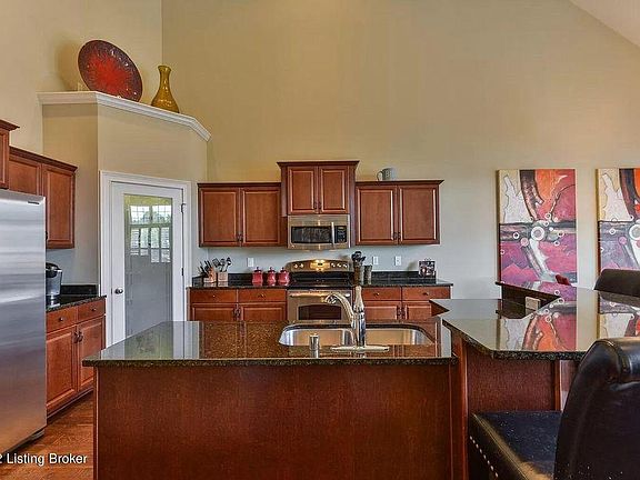 Check out this beautiful townhome in Oldham County, just across the Jefferson/Oldham County line. Enjoy 3,860 square feet of finished living space! The inviting, two story foyer welcomes your guests. There's a home office adjacent to the foyer with french doors and hardwood flooring. This home has hardwood flooring virtually thru out the main level. The powder room and laundry room are also off of the foyer. The laundry is generous sized and also serves as a mud room coming in from the garage. You'll love the vaulted greatroom/kitchen dining area. It's all one large area. The kitchen features a pantry, center island work space with sink and granite counter tops. The dining area opens up to the covered rear deck. The great room has a fireplace. Owner pays for water and garbage. Tenant pays LG&E