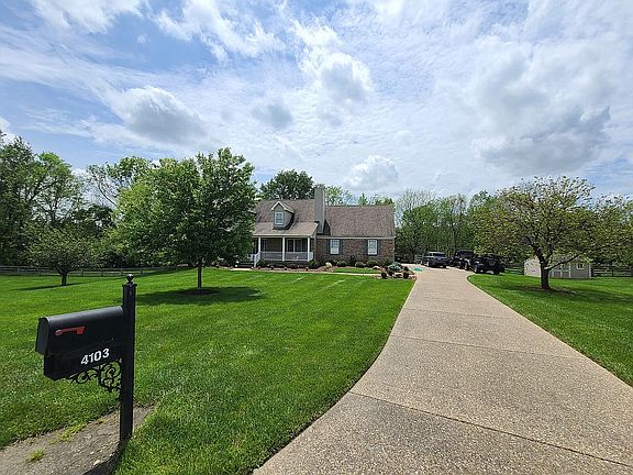 Just a short drive up I-71 to Buckner brings you to this beautiful 1.5-story Cape Cod home with a walkout basement in the Darby Pointe Development. This home sits on a 1.1-acre tract located at the bottom of the cul-de-sac, where professional landscaping accentuates the curb appeal. The extended driveway accommodates multiple vehicles, while the 8' tall garage opening allows for that extra tall truck or SUV. Any time of day, take a break on the wide covered front porch or walk around to the partially 4- board & wire-fenced rear yard where you can relax next to a custom-designed, rolling water feature and fire pit. The rolling water feature is mesmerizing and operates 24-7-365 days a year. Finally, to escape, relax in the multi-person hot tub. Other home upgrades include a natural gas generator, water-softener, high-efficient /2-stage HVAC, and an ultraviolet electrostatic air cleaning system. The inside features 3 bedrooms, 3.5 baths with the owner's suite and laundry on the first floor. Open the tab for photos, video, and drone view to see more home details. Oldham Co schools, 30 minutes to downtown and airport.