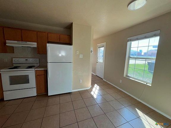 Nice three bedrooms and two full bathrooms townhome style in south Killeen. Located downstairs are spacious living room, open kitchen concept convenient breakfast bar, refrigerator, oven/stove, dishwasher, stainless sink, amazing plank vinyl flooring and ceramic tile throughout and carpet on the stairs, master bedroom downstairs comes with a raised ceiling, large walk-in closet, and in suite master bathroom. The two bedrooms upstairs comes with a full bathroom. Additional amenities downstairs include a laundry room, Kitchen, living room and dining with access to the backyard.