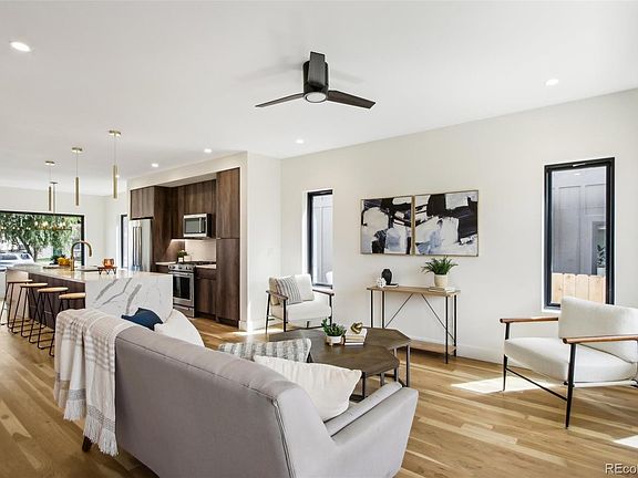 FREE 1% interest buy down with builder's lender. Stunning contemporary NEW construction 1/2 duplex completed in super hot South Broadway. Luxury kitchen w/ contemporary cabinetry, huge 11' eat-in island with stunning movement in the quartz countertops, closet style pantry, undercabinet & under-island lights & Kitchen Aid appliances. An upgraded contemporary handrail opens the floor plan. Solid white oak hardwoods on the main floor. Custom seating area for storage & coats just inside the front door. Beautifully upgraded main floor half bath with custom woodwork and stylish black accents. 2 bedrooms upstairs w/vaulted ceilings. The primary bedroom has a massive beautifully lit walk-in closet. Ensuite primary bath w/ huge walk-in shower, floor-to-ceiling custom tile & more. Contemporary black Anderson windows. Detached 2 car garage w/ wifi/smart opener, insulated garage door & wiring for electric vehicle charger. 2 bedrooms w/ vaulted ceilings. Full unfinished basement for storage and designed for 1 bedroom and full bathroom. Various rooms are prewired for TV locations. No HOA. Party wall agreement in place. Buyer to verify taxes as they have not yet been assessed. https://media.showingtimeplus.com/sites/zexkxqr/unbranded