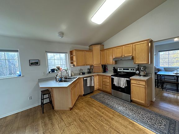 Beautiful and spacious high ceiling 4-bedroom, 3-bathroom home available for rent in Palmer, Alaska. This two-story home is ideally located just minutes from Hatcher Pass and within a convenient commute to JBER (40 min). Inside, you'll find all wood laminate flooring throughout, a remodeled master suite with a custom walk-in shower, a cozy family room, and large windows that fill the space with natural light. The kitchen comes fully equipped with a stove/oven, microwave, dishwasher, and refrigerator. A washer and dryer are also included. The home is heated by efficient forced-air natural gas and has earned a 5-star energy rating. Situated on a 1.03-acre lot, the exterior offers a fenced-in backyard, a back deck and front patio for outdoor enjoyment, and a greenhouse for gardening. There's also RV parking and a spacious 620 sq ft heated two-car garage. This home is just 10 minutes from downtown Palmer, close to shopping, dining, parks, and schools. Nearby schools include Pioneer Peak Elementary (2.2 miles), Colony Middle School (1.4 miles), and Colony High School (1.2 miles). Tenant is responsible for gas, electric, and trash. The security deposit is $3,000. Dogs are welcome with a $500 non-refundable pet fee for up to two dogs, with an additional $100 per dog beyond that, subject to approval. No HOA. Delivery services such as Amazon and Costco are available in the area. Message for more details or to schedule a showing. Renter is responsible for electric, gas, garbage, and yard maintenance/snow removal. Looking for longer term tenant. Pet policy is negotiable. Mail service is available with home delivery options.