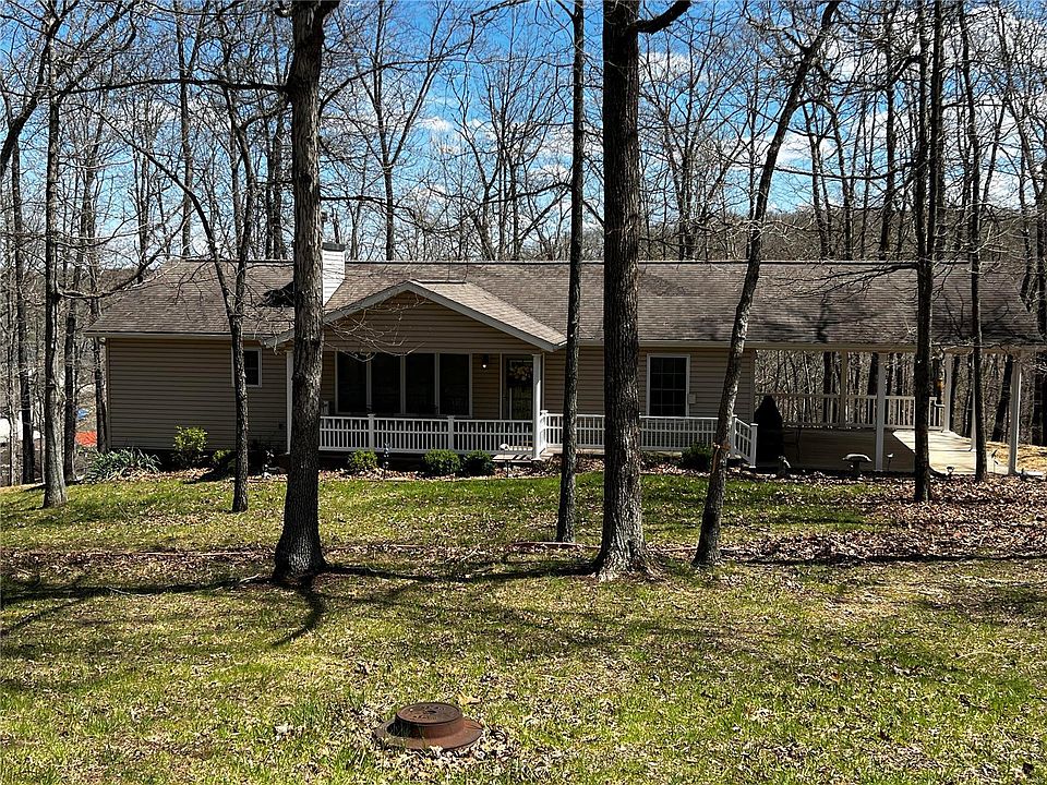 Welcome to your very own vacation home on Lake Perry! This 2bed, 2bath ranch home is the perfect retreat. Sitting on 2.2 acres, you will fall in love w/ the serenity & privacy that this home has to offer. Head inside to a spacious open concept living room w/ cozy fireplace. Flanking either side of the living room is the master BR w/ en suite bath, walk-in closet & main floor laundry, as well as the second BR w/ jack & jill style bath. Enjoy lunch at the eat-in kitchen counter after a long day on the water, or head out to the big covered porch overlooking a gorgeous view. This house backs to an additional 7.6 acres of wooded common ground. If you love to camp, the HOA approved this as a “mixed use” property. The home has been very loved & maintained by the original owner since built in '09. Sellers prefer AS-IS sale w/ all contents (including 2 exterior sheds) to remain. This is your opportunity to move right in to your dream getaway home!