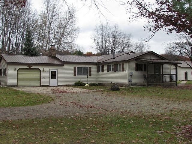 Completely remodeled in 2012, this ranch sits on 3 acres just outside of town and minutes from the lake. This home has beautiful tile from the front door all the way into the Kitchen and new carpet throughout the rest of the house. Possible 3rd bedroom has been converted into a office/laundry room. New Metal roof on house and 60x40 pole barn in 2014. New furnace and Hot Water heater in 2014. Living room has beautiful natural fire place with blower. Huge bathroom with a 2nd quest shower. Garage is car and half with tons of storage including drop down stair case into attic and wood burner that is capable of heating the whole home. 60x40 pole barn has gas heat, cable and water with well pump. Completely insulated and cement floor, 2 front doors have automatic door openers and a back third drive through door. This barn is perfect to work on and store all your toys! 2nd pole barn is 24x38 with dirt floor. This place is turn key ready and priced to sell! Request your showing now!