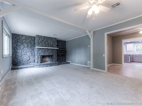 Ready for a large kitchen? Here it is!! Appliances stay with the house, too! Enter to an oversized living room with new carpet and a feature fireplace wall, perfect for holiday decor. Pass by the chic wetbar on your way to the XL Kitchen with storage galore!! New cabinetry, new flooring, new paint, new counters, new appliances!! Two full baths, one being very wide with a lot of extra space. Primary bedroom features a walk-in closet and a sitting area! Come make this house your home!