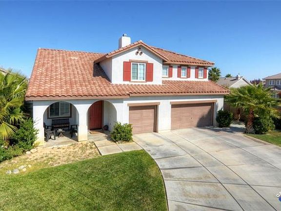 Gorgeous, two-story, 5 bd/ 3 ba mediterranean stucco ranch-style home on quiet cul-de-sac street in established neighborhood! Relax on the front porch -- you can unwind in style; the architecture evokes the feeling of the French Riviera from the comfort of your home. Enjoy entertaining family and friends on the spacious first level; it features a living area with vaulted ceilings to the second level and excellent natural light, a formal dining space, secondary living area and spacious eat-in kitchen, which comes equipped with a center island, white appliances and ample counter space. A downstairs guest bedroom, laundry room and three car garage also provide functionality and storage! Relax and unwind in any of the four bedrooms on the second level. The wonderful primary suite has its own vaulted ceilings and ample closet space, complete with an ensuite bath with a glass-enclosed shower and a Roman-style soaking tub. The secondary bedrooms give you extra space for hosting or room for a home office or studio, and have access to the full hallway bath on the second level. Sliding glass doors to the backyard give way to the concrete patio, perfect for entertaining and grilling. Nearby: Castaic Lake State Recreation Area, Prime Desert Woodland Preserve, parks, local shopping and dining, easy access to 14 Fwy and Palmdale Regional airport. Buyer to verify all information.