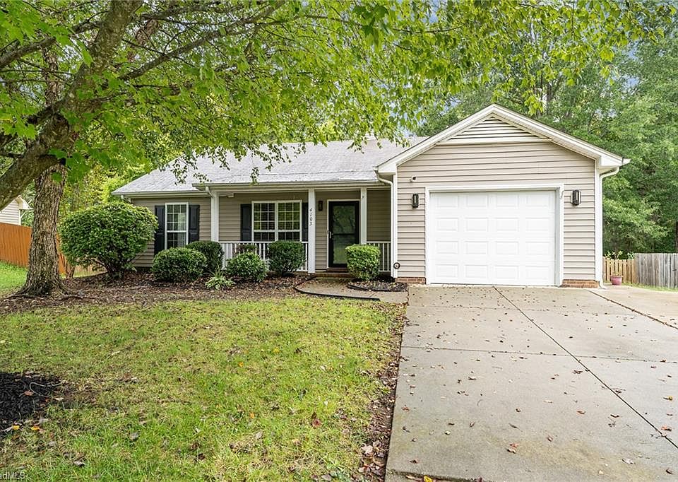 *Open House 10/6 2-4pm* Virtual Tour Available! Lovely Move-In Ready, One Level Living. Located in a well-established neighborhood with many friendly faces, this split-floor plan home has gorgeously updated living room floors and beautiful granite countertops in both full bathrooms. The new light fixtures throughout the house give a clean modern look! Cozy up by the fireplace this fall or make s'mores in the large backyard. Sit out on the deck, catch a breeze, or sit on the front porch and enjoy your morning coffee! There's extra added concrete for a 2-car driveway and a one-car garage for parking or your home gym! Fenced-in home with a very nice-sized storage building! Close to amazing restaurants, shopping, and North Carolina's best colleges and universities for an easy commute! Relocating? Downsizing? First-Time Homeowners? This is home. Make your offer today!