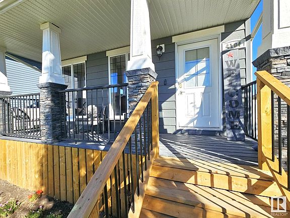 This beautiful fully developed home is located in Drayton Valley's newest subdivision, Meraw Estates. With quick access to parks, paths, and schools, this is a highly sought after location. You'll be pleased with the veranda out front and upon entering the home you'll be thrilled with the stone enclosed linear fireplace, the brand new luxury vinyl plank flooring and newer interior paint. The kitchen is great with a generous amount of cabinetry and counterspace, stainless steel appliances (gas stove), and pantry. The back entrance to the home gives way to a two tier wood patio perfect for entertaining. The double detached (finished) garage is well sized at 24x24. The basement includes a 4th bedroom with its own ensuite!