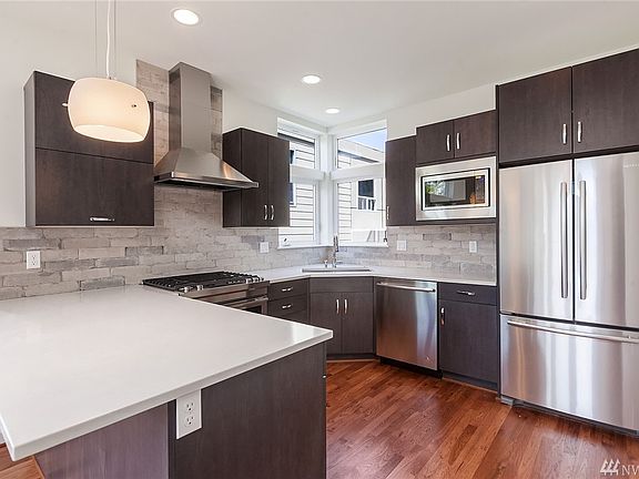 Stunning new Fremont modern home with southwest exposure. Great room floor plan with abundant light from floor to ceiling windows. Chef's kitchen with quartz counters and SS appliances. Designer inspired finishes throughout, rich hardwoods, showpiece floating staircase with custom steel railings, gorgeous tile work, sleek fireplace. Master with oversized shower and walk-in closet, striking architecture, off street parking included. Roof top deck with panoramic views. 97 walk score!!