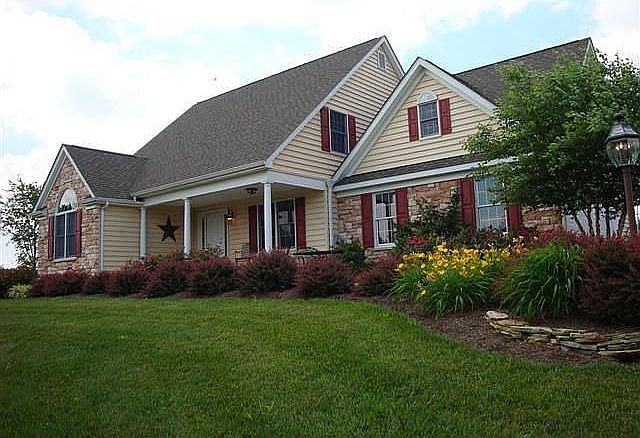 Gorgeous "CUSTOM BUILT" CapeCod by Plum construction is only 4 years old w/ unbelievable views, pristine hardwoods, Kraftwood cabinets ,vaulted ceiling in family room, 2 story overlook, incredible landscaping, stone walkway, huge front porch overlooks woods & fruit trees, 2 master suites w/ one on main level & one upstairs, propane heat, pellet stove in family room, & have backup generator