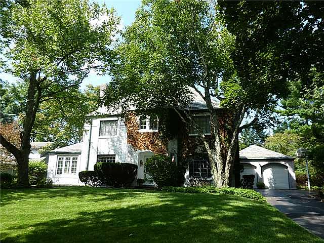 Stunning French Provincial architecture, brick two story overlooking the meadow, great views from all rooms. Richly appointed living room opens to Sun room, sliding doors lead to patios from updated kitchen with large eat in area. Lower level family room with wood burner & bar. Private manicured yard! Great opportunity!
