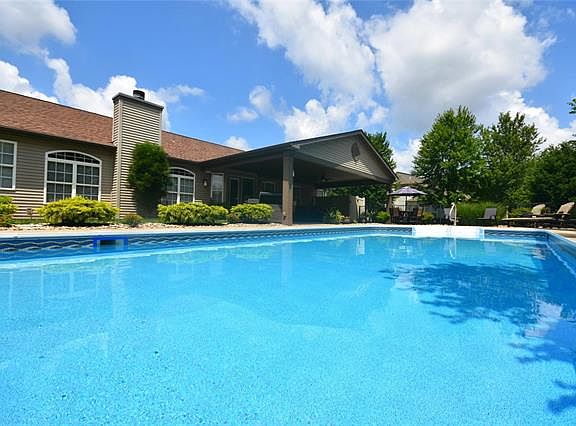 This Is The One you have been waiting for!! This home has it all! 2400 sq ft Ranch, Full Basement, 3 Car Garage, 3 bedrooms, 3 baths, Split Bedrooms, 18x40 In-ground saltwater pool, 34 ft. covered patio/living area on .75 Acres +_ , Wolf Branch Schools!! Hardwood foyer entry leads you to the formal dining and living which makes a great office! Vaulted throughout! Spacious living room w/gas fireplace opens up to the kitchen w/dining area. Breakfast bar, pantry, stainless appliances, Millstone solid surface counter tops. Bayed breakfast area leads you to the breathtaking outdoor area. Covered patio, pool, pool deck. Just wait till you see it! Master bedroom boasts a nice size walk in closet and Deluxe Master Bathroom. His/Her vanities, jetted tub and seated glass shower. On the other side of the home you will find two additional bedrooms with walk in closets and a full bathroom. Sprinkler System, HMS One Year Warranty. Garage is 23x30 w/ Utility Sink and service door.