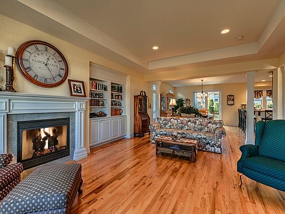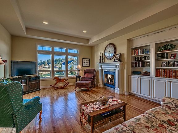 Custom home in The Orchards. Fabulous views of Fidalgo Bay and Mt Baker. Extensive hardwood floors throughout the main level, easy maintenance tile floors downstairs and custom kitchen with cherry finished cabinets, granite counters and stainless appliances. 4 bedrooms including master suite w/five piece bath upstairs. Lower level has bonus/rec room downstairs, 1/2 bath + office/den. Large corner lot, sport court, large lawn, fully fenced w/ gate for RV parking (clean out and power too!)