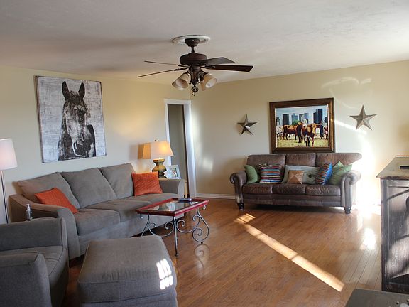 HOME WITH ACREAGE..Very nice updated home with two living areas; open eat in kitchen with extra seating area, oversized laundry room, guest bedrooms are generous in size with full bath, master suite with master bath and walk in shower, half bath, family room with wood burning fireplace, formal living area with beautiful wood flooring. ALL NEW WINDOWS. Many updates in flooring, painting, and more. Approx. 2.6 acres fenced with barn/outbuilding. Plenty of room for horse; 4H project, etc...2 c...Call a Real Estate Professional...Tiffany Aranda 405-714-1214
