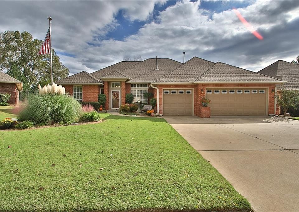 Absolutely Darling Home in the Village of Clayton Pond! Situated in a valley-like setting just off I-35 & 2nd Street, that boasts rolling hills, six fishing ponds, large greenbelt areas, neighborhood pool, and sidewalks. Just 20-25 minutes to Tinker and downtown OKC. This home has been very well maintained and shows pride in ownership inside and out. It has wood floors; two bedrooms on each side of the house; kitchen with breakfast bar, new gas stove and microwave 7/16; new large capacity HVAC in 2009; roof replaced in 2013; average utilities just over $300 per month; HOA dues are $500 a year which covers maintenance of pool, ponds, and greenbelts. Private backyard with greenbelt and much more! This is truly a home to see!