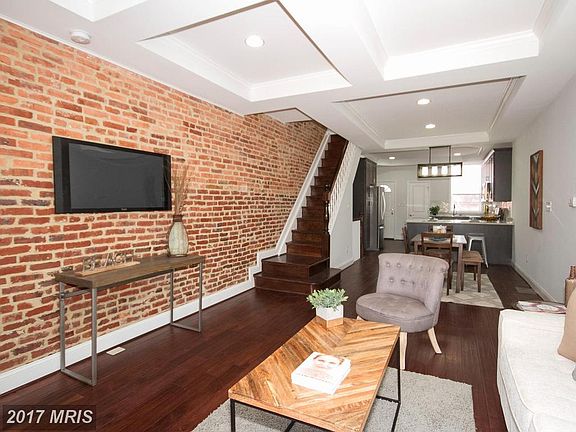 A Hampden gem w/PARKING! Spacious open flr plan, quality renovation w/coffered ceilings, designer kitchen w/lrg pantry! Deck off kitchen leads to parking pad w/potential for two cars!! Wonderful large Master BR w/tray ceiling, walk-in & wall closet! Beautiful Master BA with large marble top vanity & spacious shower! Roomy, finished LL w/wet bar, true BR & full bath that exits to cute yard space.