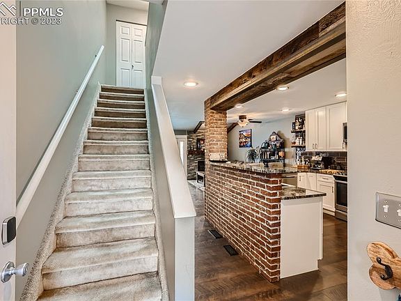 Don't miss this thoughtfully-updated Westside townhome. Stylish granite countertops and glass brick backsplashes complement a beamed and vaulted ceiling in the living room. But this home isn't just comfortable and updated on the surface, the furnace and air conditioning were recently replaced, and the HOA recently put a new roof on the property. There is an amazing Pikes Peak view out of the second bedroom upstairs. While modern and delightful to look at, the updates also make for a very functional and enjoyable living space in an awesome area. Walk across the street to massive Jackson Park. And you're just minutes from Garden of the Gods, Downtown, and Old Colorado City. There are even grocery stores and some amenities within walking or easy biking distance. Plus, the oversized one-car garage leaves room for a car and storage.