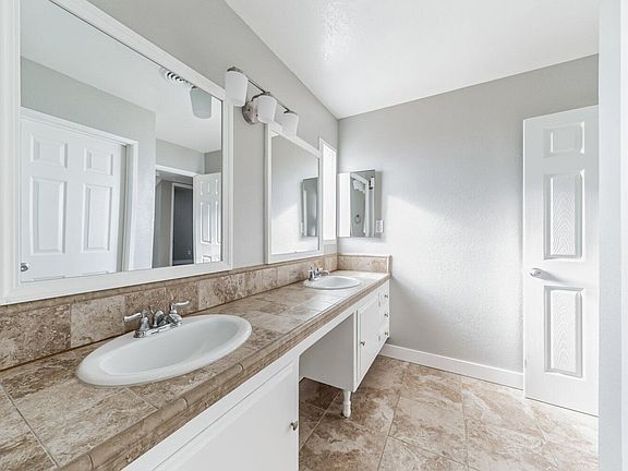 This charming home in Bakersfield is now on the market and offers 3 bedrooms, 2 bathrooms, and 1,560 SqFt of property space. The main family room is bright and spacious, providing a welcoming atmosphere. The kitchen features a convenient bar area that overlooks a secondary family room. It is equipped with plenty of storage, stainless-steel appliances, and an electric built-in stove. The secondary family room is generously sized and includes a cozy fireplace. The bedrooms are well-sized, with ample closet space, and one bedroom has private access to a bathroom with dual sinks. The laundry area is conveniently located in the two-car attached garage. The large backyard includes a paved section and a well-maintained boundary.