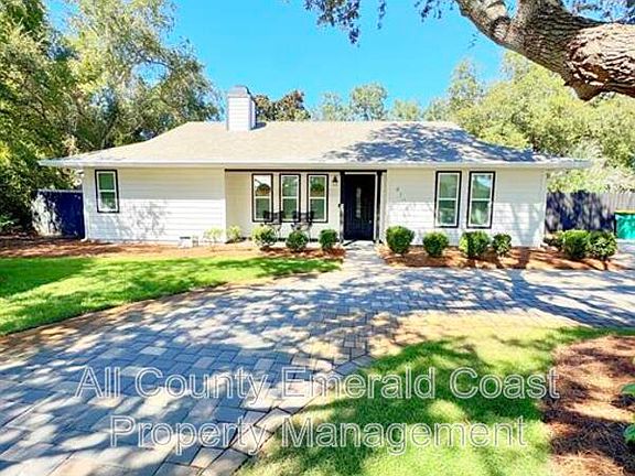 New exterior paint! Gorgeous Florida cottage style home nestled in the sought out neighboorhood of Indian Creek in Destin FL. This homes curb appeal is the first thing you will notice once you see it. Updates include brand new carpet in the primary bedroom. Primary bathroom is completely remodeled with top of the line double vanity, light fixtures, free standing soaking tub, gorgeous tile rain shower. Kitchen features gas stove, butcher block countertops, and stainless steel appliances. Back of the house is where two additional bedrooms await. Relax from the comfort of your covered deck and enjoy the lucious fenced yard during those cooler evenings. On top of all the upgrades, this home also offers a large shed for extra storage, fenced in parking for your boat or work trailer with gate. NO HOA! Lawn and pest control included!