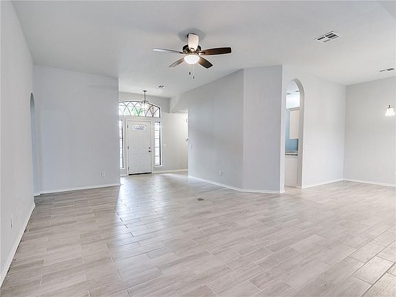 This 3 bed 2 bath home has been fully painted inside & out. New doors, floors throughout (Tile & carpet), ceiling fans & blinds. Kitchen has new countertops, backsplash, sink & hardware. New roof & gutters in last 2 years. Security/Alarm, sprinkler system & in ground storm shelter in garage. Private covered back porch and great backyard ready for summer BBQ's. Also a wonderful neighborhood POOL to enjoy without all the work associated with a pool.