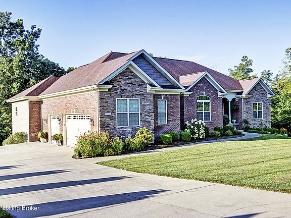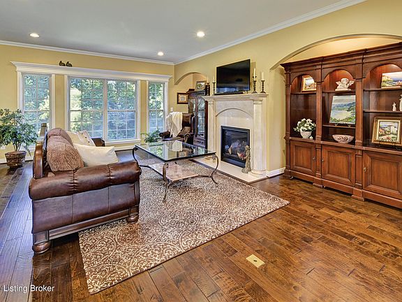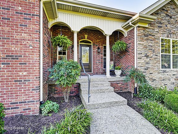 Welcome your friends and family into this quintessential custom-built Kentucky home on a 1-acre private lot with beautiful landscaping, mature trees, and an idyllic backyard hosting room to run and a creek. Enjoy the outdoors –on the front porch with room for rocking chairs, on the screened in porch out back, or from the porch swing off the finished walk-out lower level. Walking through the front door provides an elevated view through the home. An escalated Tuscan-influence greets you with pillars, arched doorways and openings, and hardwood flooring in the main living area, formal dining room, kitchen, and breakfast eat-in area. The open concept chef's kitchen presents granite countertops, travertine tile backsplash, a prep island, a natural gas cooktop, Advantium microwave/oven, a second oven, and tons of storage in a large walk-in pantry. Access the screened in porch and separate grilling area through French doors off the eat-in breakfast area. The east wing of the home hosts the primary suite, including a private office with access to the screened porch, a large bedroom with tray ceilings, and a spacious primary bathroom and closet. The west wing of the home hosts two large bedrooms and a full bath with a garden tub/shower and linen closet. A mud room and laundry room off the expansive 3+ car garage, as well as a powder room complete the main floor. The finished walk-out lower level features a large kitchen with plenty of cabinetry and opens to a massive space perfect for large gatherings, game tables, and movie nights. This level has high ceilings, multiple windows, and French doors to the outside, giving it a first floor feel. A 4th bedroom and the adjacent full bath and linen closet complete the finished space. An unfinished portion of the lower level extends the full width of the home and will solve all your storage needs. Located in the heart of Oldham County with award winning schools nearby, this home is also convenient to shopping, dining, Interstate 71, and the east end of Louisville. Set up your tour today to make this your dream home!