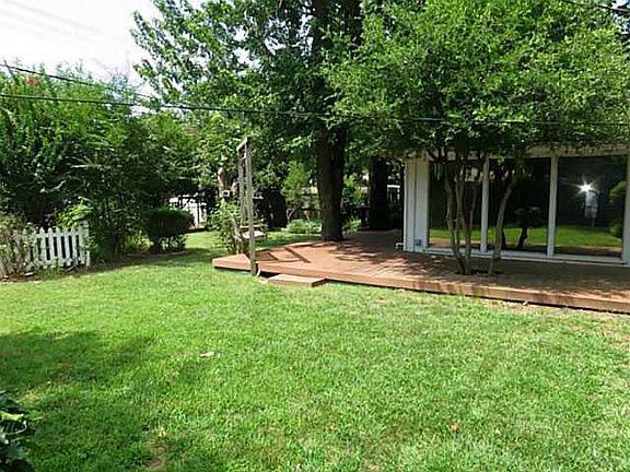 Adorable with totally remodeled kitchen, newer cabinets, counters, fixtures, desk area and builtin microwave, updated windows, 2 living areas, plantation shutters, den with huge windows looking to beautiful backyard, updated hall bathroom, crown molding, all beds with ceiling fans, side entry garage with insulated garage doors, great deck in backyard