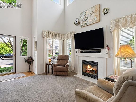 Set on a beautifully landscaped corner lot in the desirable North Range at Springs Ranch, this meticulously maintained home blends timeless charm with thoughtful design. From the moment you arrive, you’ll notice the pride of ownership, from the lush green lawn and mature trees to the welcoming covered entryway and oversized 2.5-car garage. Step inside to soaring ceilings and an abundance of natural light streaming through large windows, creating a warm, open atmosphere throughout the main living area. A cozy gas fireplace anchors the living room, while the adjacent loft adds versatility and function. It’s perfect for a home office, media space, or play area. The kitchen features hardwood floors, white appliances, generous counter space, and flows into a bright dining area. From the kitchen, step directly into your private backyard retreat with a spacious 20x16 concrete patio, elegant pergola, mature landscaping, and grapevines along the fence. It’s an ideal setting for relaxing evenings, summer gatherings, or quiet mornings with coffee. The main-level primary suite offers privacy and convenience, complete with an attached full bath. Upstairs, two additional bedrooms share a full bath and offer peaceful views of the surrounding neighborhood. Additional highlights include a dedicated laundry room, abundant storage, and a prime location close to the Powers Corridor, shopping, restaurants, and military bases. This move-in-ready home offers comfort, functionality, and curb appeal in a well-established neighborhood you’ll be proud to call home.