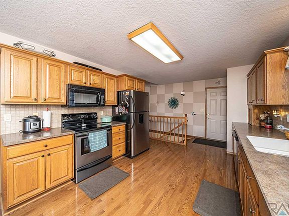 WOW! Is all I can say this one is bound to be a winner. This open concept Ranch Walkout home features 4 bedrooms, 3 bathrooms, HUGE over-sized heated 3 car garage & a neighborhood just calling your name. Some nice features include: 3-yr old shingles, wood siding painted about 3-4-yrs, heated garage you can fit a boat or extended cab truck (extra wide garage door 10') or work space w/work bench, room for MF laundry in kitchen, beautiful wood floors, wonderfully upgraded kitchen cabinets (storage & roll out shelves), Raised Garden Boxes, Self draining sprinkler system, storage shed, stamped patio off walkout, solid core doors & hardwood trim, recent bathroom & kitchen upgrades. Located on the East-side in close to John Harris Elementary, parks with pool & summer entertainment, restaurants, churches, schools & easy access to much of Sioux Falls within minutes of your front door. This is a wonderful mature area with great established Neighborhood Watch. More info in attached docs!