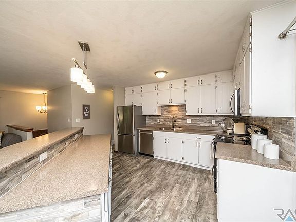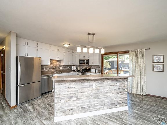 Clean, bright and open describe this beautiful home located in SE Sioux Falls which was remodeled 2 years ago. The main floor offers 3 sizable bedrooms with large closets. The master bedroom includes a convenient master bathroom with a gorgeous tiled shower. Also on the main floor is a bright open-concept living room, dining area and kitchen, which includes stainless steel appliances, a breakfast bar and sliding glass door to the deck. A spacious full bathroom featuring beautiful tile rounds off the main floor. The lower level offers a family room with a modern brick accent wall. The lower level also boasts 4th bedroom and a large laundry room with a half bathroom. New furnace and air conditioner in 2017. Updated in 2016 - new shingles, garage doors, exterior doors, flooring, paint, some electrical and light fixtures throughout. Spacious garage w/ additional storage and sink. 1 year buyer warranty available