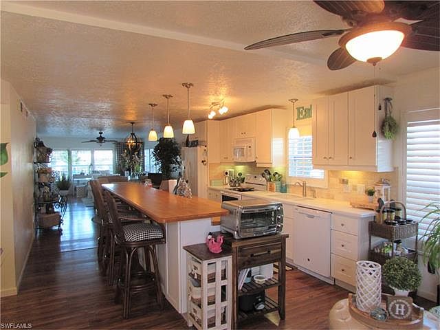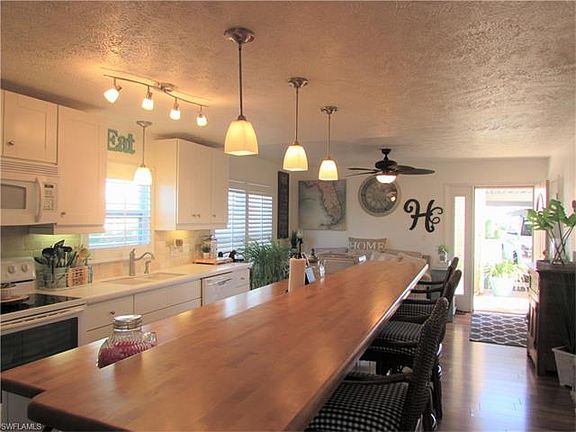 This Wow Factor, Coastal Condo has it all: Sailboat Access with assigned Dock and New 10,000# Lift, First Floor End Unit, Western Rear Exposure, Wide Canal Views, and it's Move in ready. The Beach Parkway area unit is superbly updated in a coastal cottage theme and with high grade materials such as solid wood doors, plantation shutters, huge butcher block breakfast bar with wood panels and trim, beautiful cabinetry, wood baseboards, and master bedroom french doors. The lanai is a walkout and so it's just a few steps to the dock area. Residents and guests enjoy a heated community pool with gorgeous views on the wide, intersecting canal. It's a short walk to Jaycee park and Veterans Park, a few minute boat ride to the river, and close to The Boathouse Grill and Bar at the Cape Coral Yacht Club beach. Covered resident parking, plenty of guest parking, and a roomy storage unit differentiate this complex from others in the area. The level of detail in the remodel has to be seen to be appreciated - make your appointment soon to see this coastal condo in South Cape Coral!