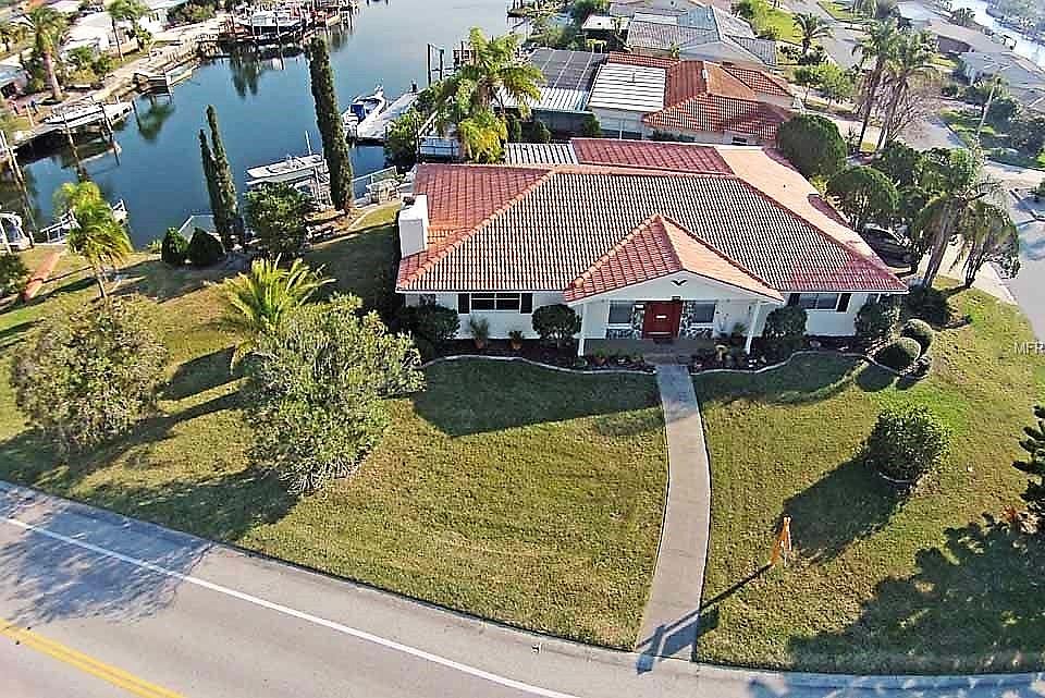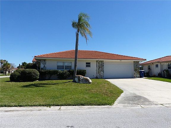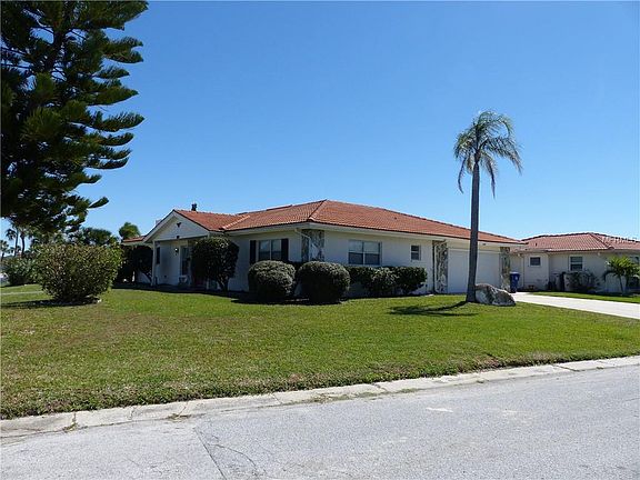 This spacious 3-bedroom, 2 bath, 2 car garage waterfront home sits on a large corner lot which includes the adjoining mooring lot and has over 100 feet of water frontage. This home boast an open split plan with cathedral ceilings. Enjoy quality designer tile and beautiful wood laminate flooring! Large living room, spacious master bedroom with wood-burning fireplace. Both guest bedrooms are ample in size. Enjoy the cool gulf breezes on the large screen and vinyl-window enclosed porch with wonderful views of the dock and waterfront. Large paved patio & new seawall currently being installed on mooring lot! The wide and deep sailboat friendly canal has quick and unobstructed access to the open Gulf of Mexico! The floating dock will launch a thousand fishing and island-hopping adventures to the nearby tropical islands! The Gulf is only a few minutes idle cruise away! Join Gulf Harbors private sandy beach which is just a short bike ride away. Several other nearby parks and beaches too! One pet allowed, max weight 50lbs with owner approval, non-aggressive breeds only. First last and security required, $40 per person application fee. Come see this charming tropical waterfront home today! This is a must see