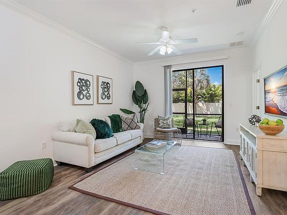 Boasting a beautiful remodel for comfort and appeal, the life you've wanted is found in this Stoneridge condominium. Situated on the ground floor, you will appreciate the convenience, privacy and open floorplan within this residence. Offering peaceful surroundings beyond the screened patio and porch adorned with manicured landscaping, natural views enliven the spacious living and dining rooms. The kitchen is efficiently located for hosting events or ease of movement from one space to the next. Perfect for meeting versatile needs or accommodating guests, an office/den is found just off the living room, next to the guest bedroom and includes a wealth of built-ins and a desk. The split layout allows the master suite a wing of its own for solitude and sanctuary, featuring two closets and a spacious, updated en-suite bath with new walk-in shower. Adding to the draw of this residence are the new laminate flooring in the living room and bedrooms, a generous garage, guest bath and several places to enjoy the outdoors. Stoneridge is a gated community with HOA maintained grounds near the best that Sarasota has to offer, including highly-rated schools, Gulf beaches, nature trails, shopping and dining.