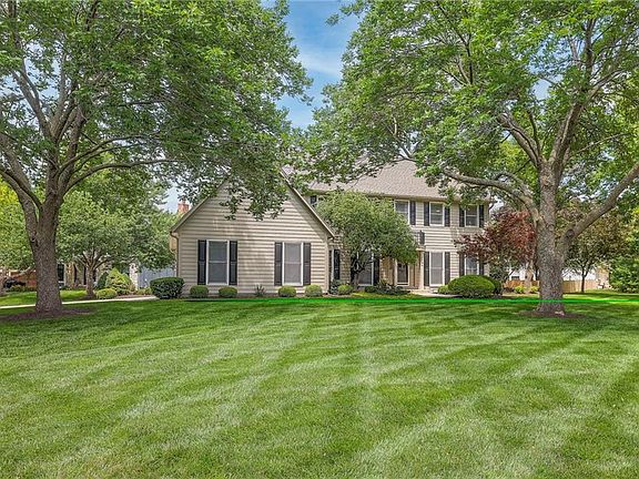 (Renovations are now complete — NOW A 5 BEDROOM HOME w/ over 4000 SQUARE FEET!) Here's your opportunity to own a lovely, move-in-ready home on a GREAT cul de sac in highly desired Cherry Creek! This large, stately corner lot is truly an A+ LOCATION. The GORGEOUS back patio w/ new pergola and expansive custom landscaping provides an awesome indoor-outdoor lifestyle. The beautiful interior has so many great features, including a lovely LARGE family room, an updated kitchen with quartz countertops, gleaming hardwood floors on the first AND second floor, BIG bedrooms, bathrooms, & closets, extensive detailed trim work, 9ft ceilings throughout the main floor, and so much more. The home has TWO working fireplaces, including one in the awesome primary bedroom. The primary bedroom includes an EXCEPTIONAL vaulted ceiling, as well as a beautiful new LAUNDRY ROOM and spacious WALK IN CLOSET with all the SHELVING AND WASHER/DRYER INCLUDED! The basement was just expanded in June 2024 and now includes a large additional living room w/ beautiful LVT flooring and a CONFORMING 5th BEDROOM! The basement also includes a BRAND NEW egress window, great workshop and storage area, and a sump pump closet with an impressive Venturi backup system. The amazing backyard includes a comprehensive engineered drainage system incorporated into the beautiful landscaping. The architecture is a CLASSIC Colonial two story with a traditional floor plan accompanied by so many unique updates! Such a well-kept and well-loved home in a truly EXCELLENT LOCATION in the outstanding Blue Valley School District. The cul de sac is so friendly, and its low-traffic location within the neighborhood is nice & quiet and offers great privacy. Also just a short walk to the awesome Cherry Creek neighborhood POOL! Don't miss this TOTAL PACKAGE!