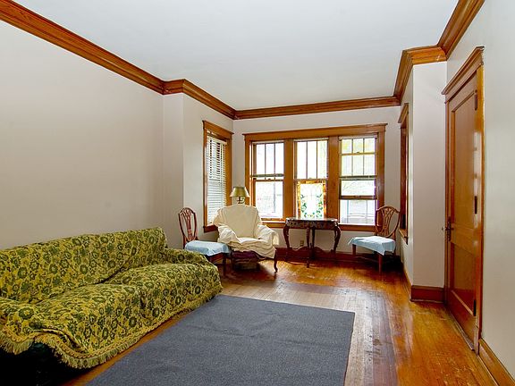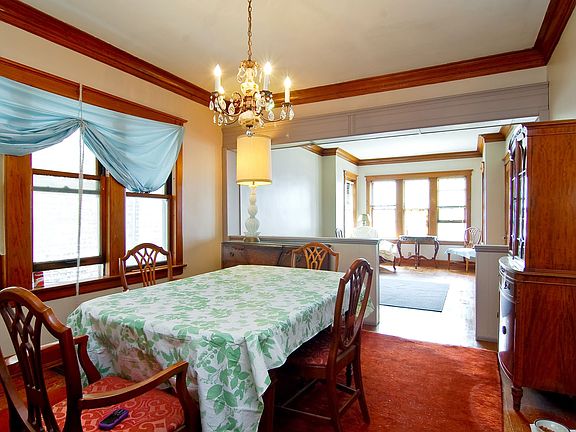 Quiet Street, Single Family 4 bed/2 bath. Wide 30' lot with large room sizes. HDWD flrs, original crown moulding & woodwork on 1st flr, walk in pantry. Partially rehabbed 2nd floor recently painted w/refinished HDWD floors. Large living space w/tons of potential. Wrought iron fenced front yard w/back yard & large 2 car garage. Property being sold as is.