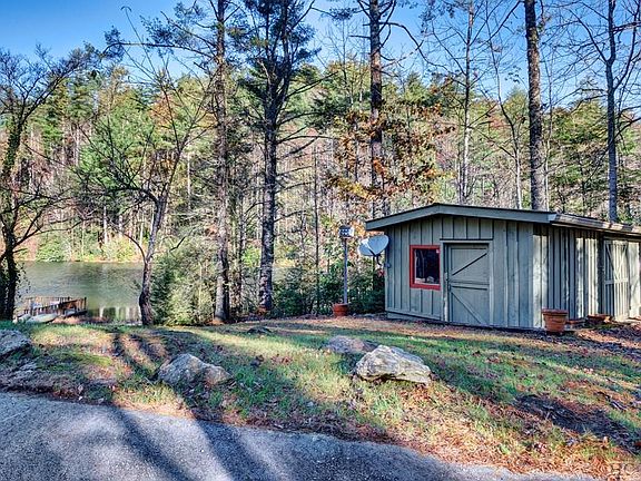 This spacious 4 Bedroom /3 Bath rustic home offers endless opportunities with upper and lower decks allowing open views plus access to the lake and private dock. Main Level floor to ceiling open windows give natural light into the one of a kind kitchen, featuring natural slab counter tops and immaculate hand crafted cabinetry. Two stone fireplace in greatroom and brick in den. , hardwood floors and vaulted exposed beam ceilings provide a cozy cabin feel to this mountain home. Lots of bonus space,separate workshop and attached carport. Master with private bath and walk in closet on main floor! Generator. Lower floor features a den with fireplace, bedroom, private bath, and utility room as well as lake view. Adjacent to hundreds of acres of Nantahala National Forest and access to Chattooga River Trail. Access to Holly Berry amenities that include, lake, fishing dock, fire pit, gardens and pavilion all with views of Whiteside Mountain cliffs.