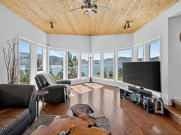 STUNNING unobstructed Lake Views on a quiet no thru road! 5 bed, 2 bath custom home with 2,500+ sqft of living space, including a separate-entry IN-LAW SUITE. Perched in the perfect Peachland location—just above town for panoramic views yet below the snow line for easy year-round access. Enjoy the scenery from the expansive wraparound deck with glass railing or through the oversized V-bay windows. Extensively updated with a brand new high-end dual-fuel heat pump/furnace (2023), HWT (2021), Maple hardwood on the main, New vinyl plank in the basement. Stylish upgrades include granite counters, modern doors, and more. Bright, open-concept layout with incredible natural light. Located on a quiet no-thru road just minutes from Ponderosa Golf Course, the marina, beach, shops, and restaurants. A rare opportunity to own a view property that blends upscale comfort with unbeatable location! THIS ONE IS STILL AVAILABLE AND EASY TO SHOW!