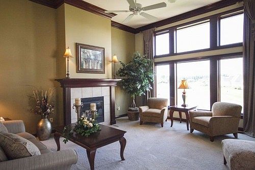 Executive living! You’ll love this home from the main floor master to the finished basement to the view from the deck. Beautiful wood work will awe you when you enter the large foyer. The open floor plan has all windows overlooking the pond and beautiful homes on the other shore. Large kitchen island and plenty of cabinets plus a pantry make baking and cooking very enjoyable. The gas fireplace in an open living room that is flanked with wood pillars. The walkout lower level has a wet bar with dishwasher and refrigerator. The 5th bedroom in lower level could be a den. 3 bedrooms including the master have walk in closets. The lower level has 2 large rooms for storage. Beautiful landscaping steps will get you from lower level patio to side of home. You can maintain this look with the irrigation system. You will want to call this Home. Home has surround sound on the first floor and the lower level.