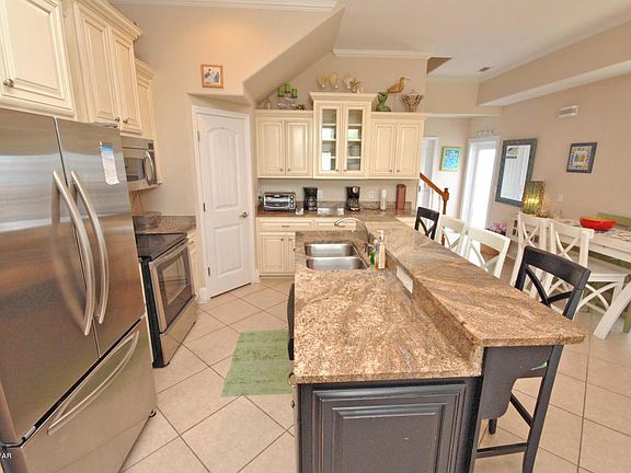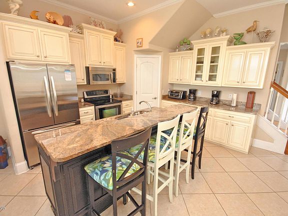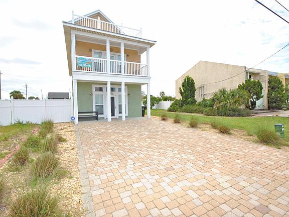 Beautiful Beach House 4 bedrooms and 4 full bathrooms only steps from the beach with gulf view from second and third story leisure deck. Home features ceramic tile throughout and hardwood flooring. A great open floor plan with kitchen overlooking the family room and fireplace. Kitchen incorporates all stainless steel appliances, breakfast bar and granite counter top, new cabinets. Crown molding through out. There is a master bedroom on the 1st and 2nd floor. The first floor has a laundry room. Second floor has the additional bedrooms with each bedroom having its own full bathroom. The third floor has a great bonus room, additional bedroom with wet bar/fridge and large outside deck overlooking the gulf. The back yard has an in ground heated pool and custom paved decking throughout. Take