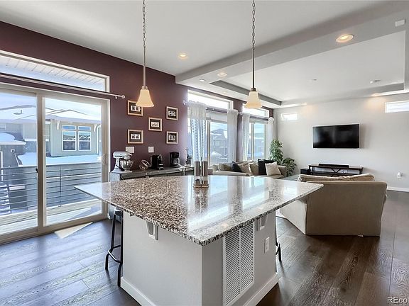 Looking for a contemporary home with terrific space? Tour this beautiful and move-in ready home with 3 levels of living. Lower level has a walk-out, bedroom, full bath and bonus room. Main level is open with a hearth room style living to make your own; consider a living area with island dining in kitchen or an extended kitchen with main dining and side sitting area. Master bedroom is located on the main level with walk-in closet and gorgeous bath. A half-bath conveniently located on the main too for guests. Balcony off kitchen with views to fireworks on the 4th. The upper level holds 2 guest bedrooms, full bath and a large loft perfect for recreation and/or family living. The kitchen features custom backsplash, granite counters, tall cabinets, pull out drawers, canned lighting, GE appliances, is *piped for gas stove*, refrigerator with water and ice dispenser. Lots of upgrades throughout this home. Buyer benefits from a newly installed solar system with full transfer of warranty/guarantee. Save on energy costs for years to come - your monthly bill is $88.27! Upper level views! Minimal lawn upkeep and beautifully landscaped, fully fenced. Home sits along the community green-path that leads to a kids playground area. Walking distance to the Meadows town center, schools and parks! Fiber to the home for fast internet work-at-home requirements. Piped for central-vac. Central AC. Don't miss this one, you are going to love it!
