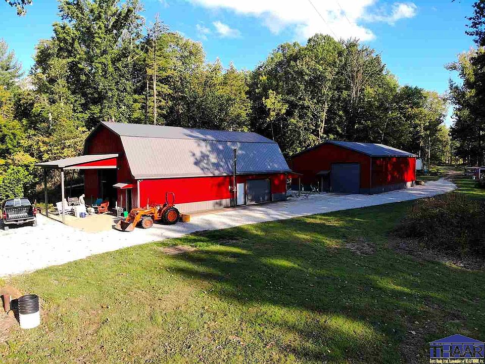 101.70 Acres of woods, water and great building sites! The possibilities are endless. Excellent hunting and fishing property, or a place to build your dream home. 2005 Mobile Home recently remodeled with new kitchen cabinets, counter tops, flooring, and new roof and gutters. Nice large deck on the front. This home is in great condition and would be a good place to live while you build or use it for a weekend get away. 2 awesome 35x50 Pole Barns, recently redone. Concrete in both, 2 overhead doors in each, lean to on each for extra outside storage. The front barn is the man cave that has an elevator to the upper loft, a bathroom, and a wood burning stove. There are trails cut through the entire property and around the 3 strip pits. Approximately 18 acres of water. Such a rare find with 100 plus contiguous acres in 4 parcels. The woods are currently being managed by the USDA Forestry Program for the next 3 years.