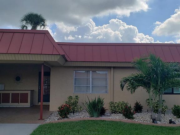 Waterfront Villa with Canal Views Pet Friendly! Welcome to this nicely furnished two-bedroom, two-bath ground-level villa located on a tranquil canal where dolphins and manatees are known to stop by for a visit! This updated villa features modern flooring and a renovated kitchen with a breakfast bar, perfect for casual meals or entertaining. The open-concept living and dining area flows seamlessly into a light-filled Florida room, offering an inviting space to relax indoors while enjoying the view. The primary bedroom includes a queen bed and en suite bath with a walk-in shower. The guest bedroom also has a queen bed and a full bath with a tub/shower combination. Step outside to your patio overlooking the water fully equipped with a table, chairs, and umbrella for alfresco dining. There's also an attached carport with extra storage and a dock, ideal for watching marine life up close. And yes your well-behaved fur-friend is welcome! Located just 4 miles from the beach, this peaceful retreat blends nature, comfort, and convenience.