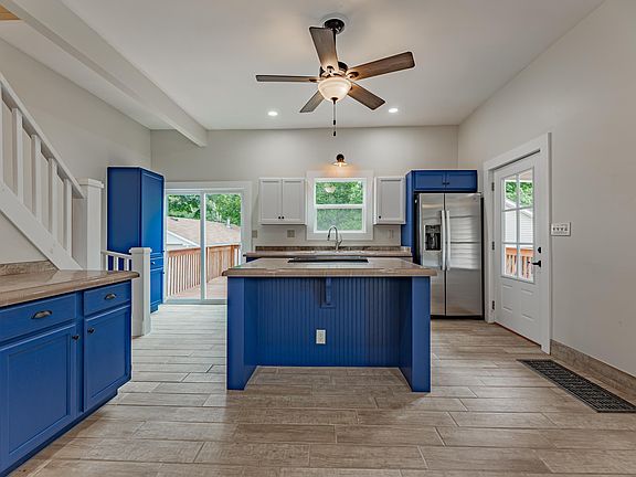 Discover the perfect blend of historic charm and modern convenience in this beautifully remodeled 1890 home. Meticulously updated with new HVAC, plumbing, and electrical systems, this residence offers the best of both worlds. As you enter, a welcoming foyer invites you into a spacious living room, perfect for both entertaining and relaxation. The adjacent half bath adds a practical touch for guests. The heart of the home is the large eat-in kitchen, featuring striking royal blue cabinets, concrete countertops, and brand-new stainless steel appliances. The kitchen opens to a bright and airy laundry room and flows seamlessly to an expansive deck, ideal for outdoor dining or quiet evenings under the stars. The main floor hosts a luxurious primary suite complete with a walk-in closet and an en-suite bathroom featuring dual vanities, a soaking tub, and a walk-in tiled shower. Upstairs, you'll find three additional bedrooms and a full bath, all well-insulated with closed-cell foam for optimal energy efficiency. Enjoy year-round comfort with zoned heating and cooling, supported by a high-efficiency Payne HVAC system. The unfinished walk-out basement offers endless potential for customization, while the two-car detached garage with a metal roof provides ample parking and storage. Every detail of this four-bedroom, two-and-a-half-bath home has been thoughtfully considered and crafted with care by the owner for personal occupancy.