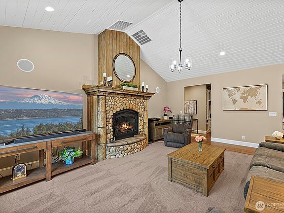 Custom rambler on 1 acre offering a peaceful setting close to town. Open floor plan with vaulted great room, stone fireplace, formal dining, and a chef’s kitchen with oversized island and butler's pantry with second fridge. Split bedroom design with luxurious primary suite and remodeled baths. Den/office with built-ins, plus new carpet, paint, and appliances. Step outside to a covered pavilion with fireplace, hot tub + swim spa, outdoor TV, and beautifully landscaped yard with sprinklers and garden space. New fencing, EV charging, central vac, and ADT security add convenience. 3-car garage and outbuilding complete this move-in ready retreat.
