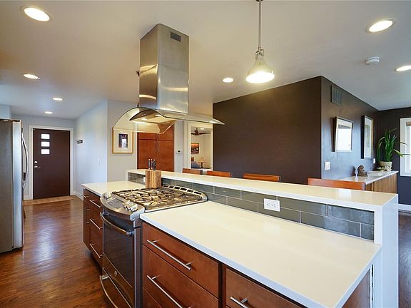 Very cool modern home on a double lot in Harkness Heights. Spacious and open floor plan has tons of natural light, the kitchen has a quartz island with waterfall edge and a 5 burner range, stainless appliances and 2 ovens, the master suite has a custom walk-in closet, there is a wraparound Trex deck with custom metal railings and fabulous city views, private covered back patio, backyard with raised garden boxes, drip lines and sprinkler system. This home is perfect for entertaining! There is an oversize two car garage plus off street parking. Fantastic central location, close to parks, restaurants, shops, West Highland and Berkeley and Sunnyside!