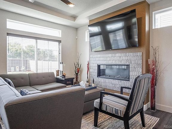 With acceptable offer, seller is willing to offer a concession for interest rate buy down! This stunning home offers an expansive open floor plan that effortlessly blends the kitchen, dining, and living areas—perfect for modern living and entertaining. The kitchen is a chef's delight, showcasing elegant shaker-style cabinets, sleek quartz countertops, and stainless steel appliances, making meal prep a breeze. Cozy up by the inviting fireplace during Colorado's crisp winters. Upstairs, the primary bedroom serves as a peaceful retreat with a spacious en-suite bathroom and walk-in closet, providing plenty of space for your wardrobe. Two additional bedrooms, a full bath, and convenient laundry facilities complete the upper level. Step outside to the covered patio with extended concrete, ideal for hosting or relaxing in the large, beautifully landscaped yard. This home also features a new roof and an instant hot water heater for added comfort and efficiency. No monthly HOA, it's included in your property taxes. Located in a newly developed neighborhood, you'll have easy access to a variety of shops, dining, and entertainment options. Plus, frequent travelers will appreciate the short drive to Denver International Airport and the home's proximity to downtown Denver, just 25 minutes away. Don't miss out on this gorgeous home in a vibrant community!