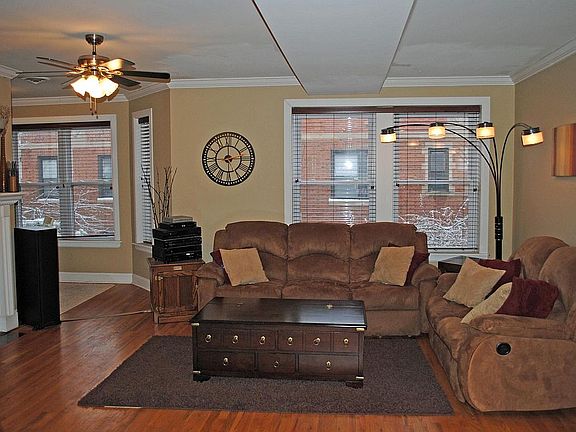 The ideal opportunity to live close to everything Chicago has to offer or to add an upgraded Buena Park condo to your investment portfolio. This top floor corner unit of a secured, 3-story building is the largest unit in the complex at nearly 1300 square feet, offering endless natural light. With an open floor plan, the large living room has a wood burning fireplace and opens to a large eat-in kitchen featuring granite counters, SS appliances, 42” cabinets and a breakfast bar. Exit the kitchen to a massive deck. Each of the two bedrooms features a custom closest. The primary bedroom offers an en suite bathroom with a bathtub/shower. Hardwood floors throughout, in-unit W/D, new AC unit in 2021. Storage and bike room and transferable parking space available across the street. Meticulously maintained association, large masonry project completed in 2019 and healthy reserves. Association is below rental cap and pets are welcome. Buena Park has a beautiful mix of historic courtyard buildings, greystones and impressive mansions. The lakefront is just blocks away and Wrigley is .5 miles south. Sheridan Red line stop .2 miles, plenty of local and express buses and LSD is easily accessible. Current renters lease runs to mid-July and must be honored.
