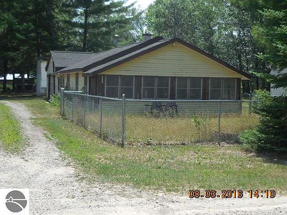 Cottage Up-North near 7 inland lakes and plenty of National Forest and trails! This knotty pine cottage has had some updates over the years, newer roof about 6 years ago, wall space heaters are 3 years old and the electric was updated 2 years ago! Your decorating ideas can spruce this cottage with much potential into a doll house! The unfinished enclosed porch could be finished off to be very inviting! Main living space is nice and open, galley kitchen, two bedrooms and a 3/4 bath. The family room/game room area also houses the space for your utility room area! The large garage is sure to meet your storage needs! There is also a storage shed.
