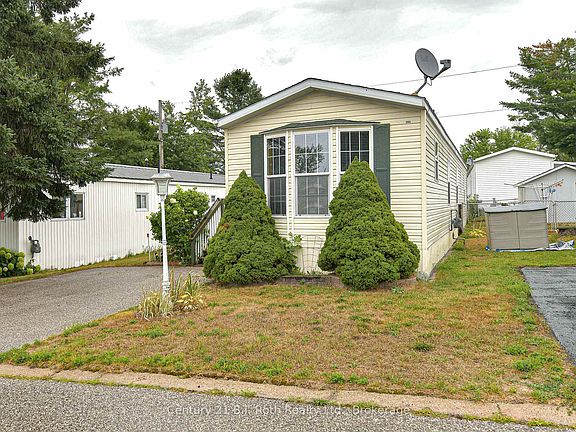 Beautiful well maintained 2 bedroom Mobile in Silver Creek! Outside features, large lot, private paved double driveway, large deck and a storage shed with hydro. Inside this home features a bright eat in kitchen, comfortable sized living room, 4 pc bath, the second bedroom is a generous size with a primary bedroom featuring double closets. All offers must be conditional on Park Approval, Please attached Schedule B with all offers. New monthly fees for buyer will be $753.59 which includes Lot fee: of $680.00 Tax: $40.59 Water: $33.00