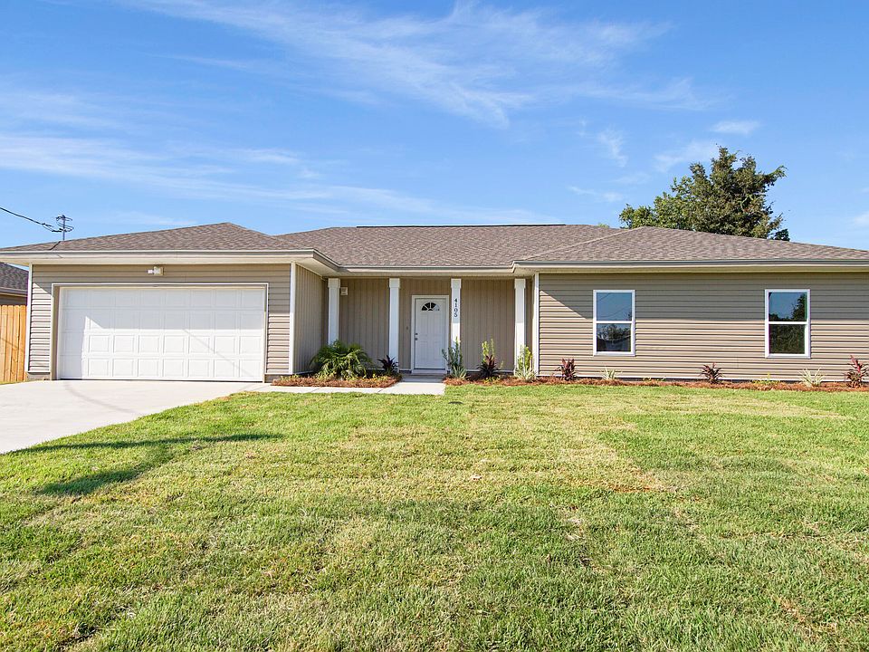 CURRENTLY UNDER CONTRACT, SELLER WILL CONSIDER BACKUP OFFERS Seller gives $3000.00 credit for CLOSING!! AWESOME HOME. MAKE OFFER!!! NO HOA!!. 2023 New Built home by Smith and Co. A tremendous floor plan, no wasted square footage, maximized livability! Kitchen and both bathrooms have granite countertops, large closets, coat closet, linen closet, laundry room/mud room with upper cabinets above the hook ups. 9-foot ceilings throughout this wonderfully planned home. Neutral paint and flooring throughout for modern, cohesive look. Great room and all bedrooms have ceiling fans with attached light fixtures with separate control switches. All 3 bedrooms have carpet. Kitchen has breakfast bar, pantry, dishwasher, garbage disposal, microwave over electric flat top range, beautifully tiled backsplash. Recessed lighting in great room, foyer and master bedroom. Hall bathroom has shower/tub combo. Master bedroom is spacious with two windows, a huge walk-in closet. The master bathroom has a good sized double vanity with two undermount sinks, a separate shower, a garden soaking tub with a beautiful tile surround and a large privacy window for a light, airy feel. Good sized front entrance covered porch and large covered backyard patio for grilling in your newly sodded privacy fenced backyard. The low maintenance landscaping is pretty and colorful. Large two car garage, lawn well with sprinkler system. Move in ready Home. This home is ready to make memories in. You will love this home. Located a few miles from Tyndall AFB, 4/10 mile from boat ramp on lake, convenient to shopping and parks. This 3-bedroom 2-bathroom, 2 car garage home will not last long. Come quickly to fully appreciate and see all the possibilities.